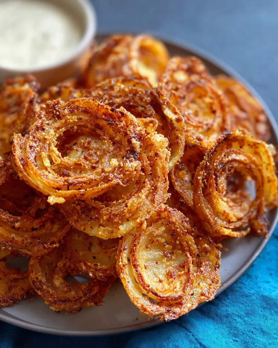 In summary, these delightful 2 ingredient onion ring chips are not only simple to make but also a perfect snack or appetizer. With the savory combination of onions and parmesan, they deliver a satisfying crunch. Pair them with my Lazy Tzatziki for an extra flavor boost. Enjoy these guilt-free chips at your next gathering!