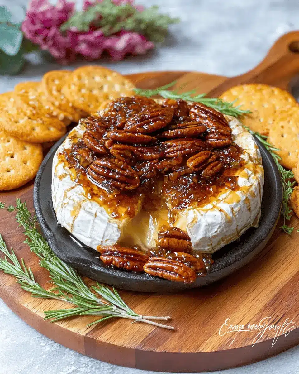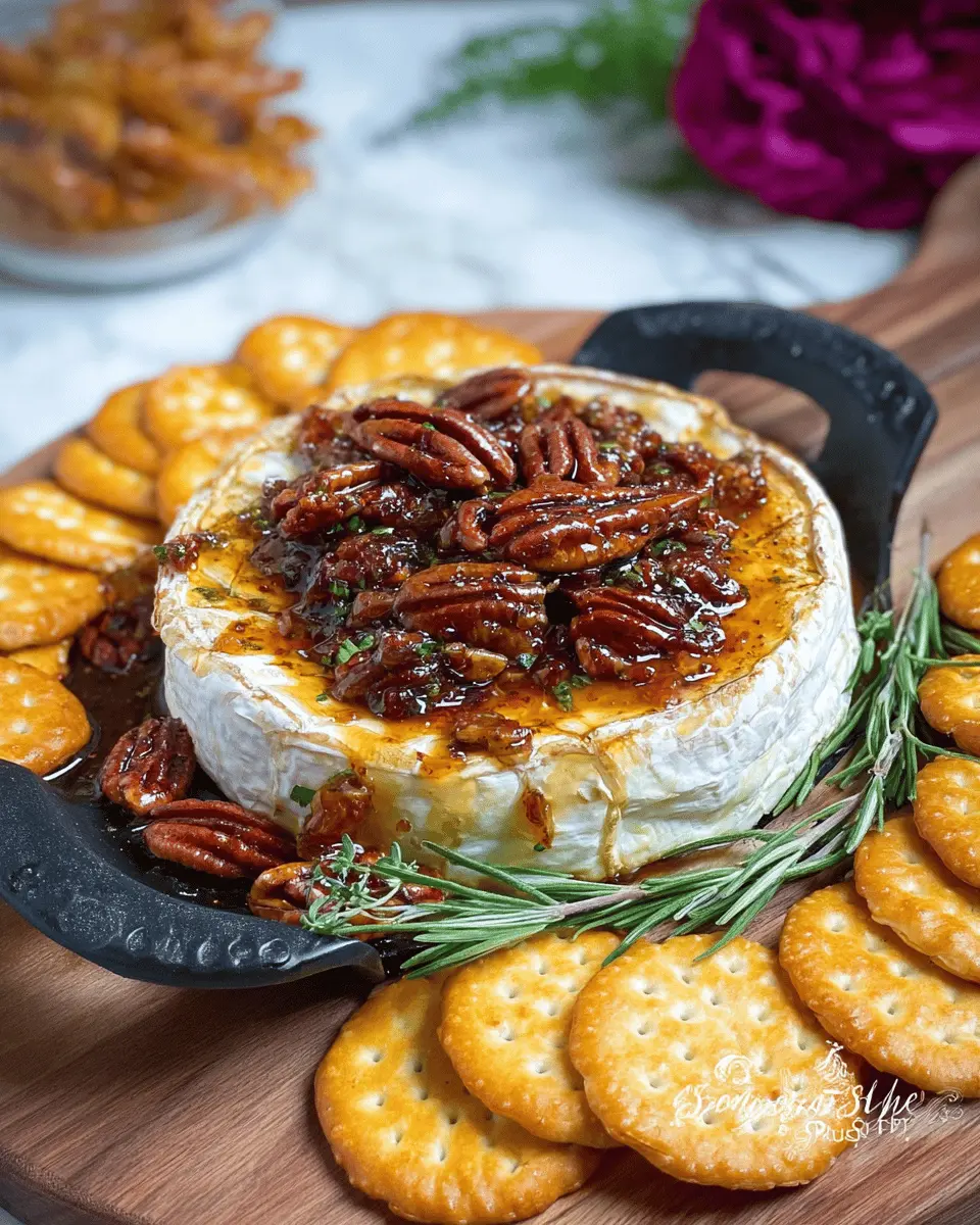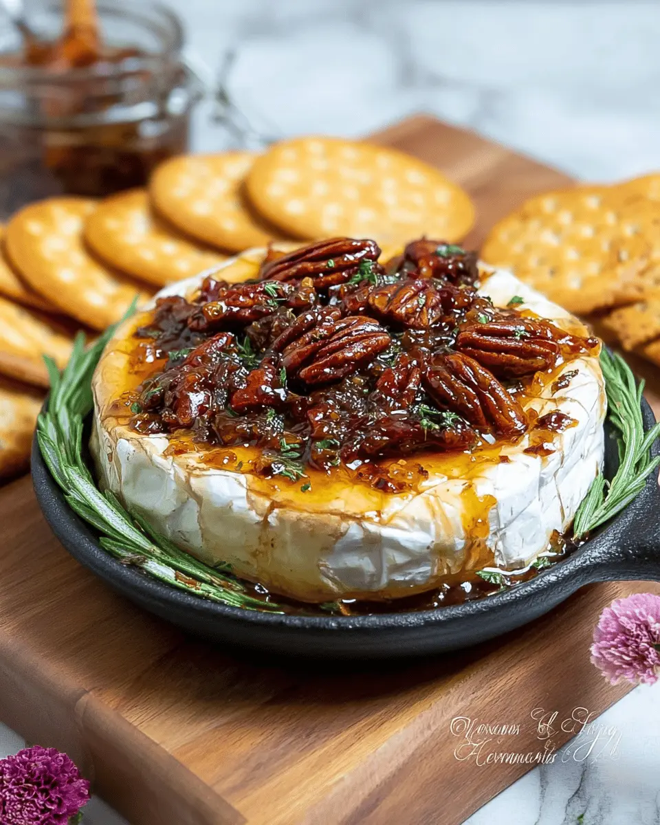 In summary, Baked Brie with Fig Jam and pecans is a delightful and easy recipe that adds a touch of elegance to any gathering. Its creamy texture paired with the sweetness of fig jam makes it a standout appetizer. Serve with crackers or fresh fruit for an unforgettable treat!