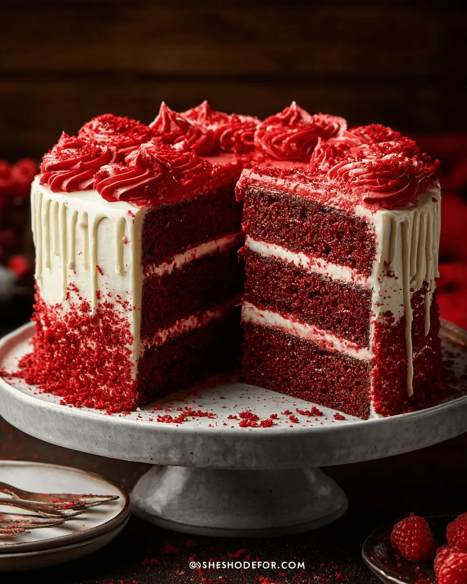 To truly impress, think outside the box with your presentation. Use a tiered cake stand to give your Bloody Red Velvet Cake height and drama. An elegant dusting of cocoa powder or edible glitter can also add a touch of sophistication. For a spooky atmosphere, serve with faux spider webs made from spun sugar or elegant candied roses placed strategically on the plate. With these tips, your cake will not only taste incredible but also serve as a stunning centerpiece at any gathering.
