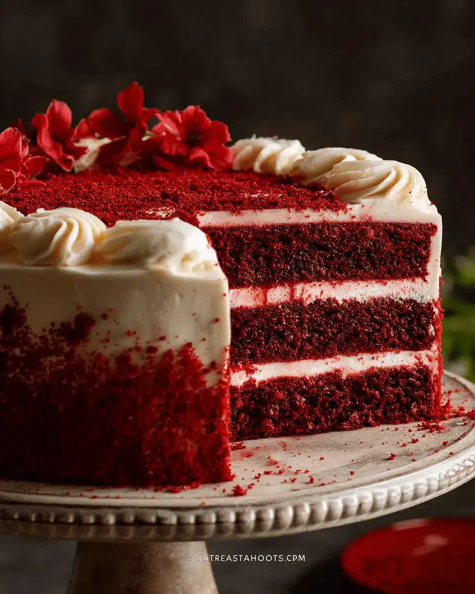 To achieve a deeper, more vibrant red in your Bloody Red Velvet Cake, consider adding an extra tablespoon of red food coloring to the batter. Some bakers swear by using gel food coloring for a richer hue. To elevate the color even more, ensure your cocoa powder is unsweetened and Dutch-processed, as this can lead to a richer base that enhances the overall color.