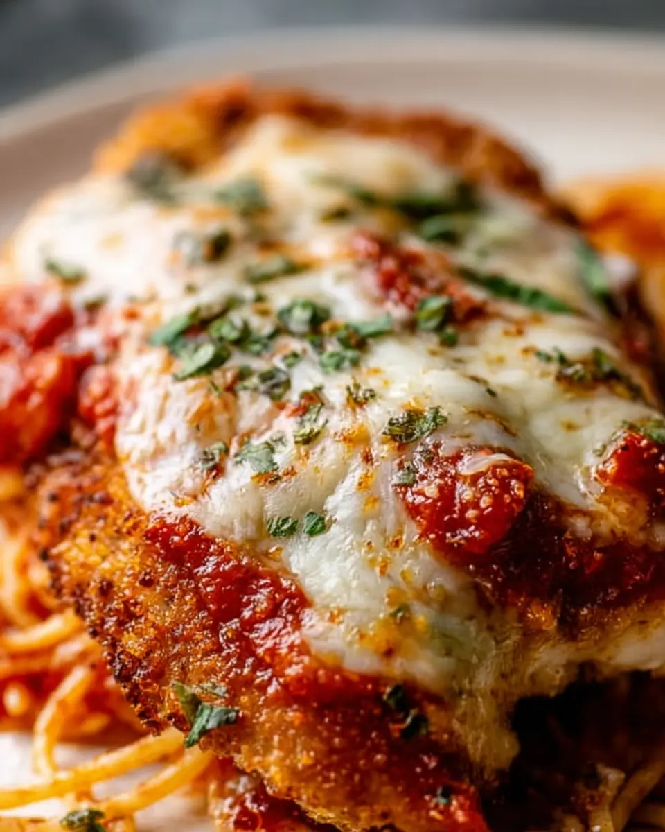To achieve perfectly juicy chicken in your Chicken Parmesan, start by making sure to butterfly the chicken breasts evenly. This helps them cook through uniformly. Season generously with salt and pepper for enhanced flavor. A quick sear in a hot skillet gives a beautiful crispness while locking in moisture—avoid overcooking during this step!