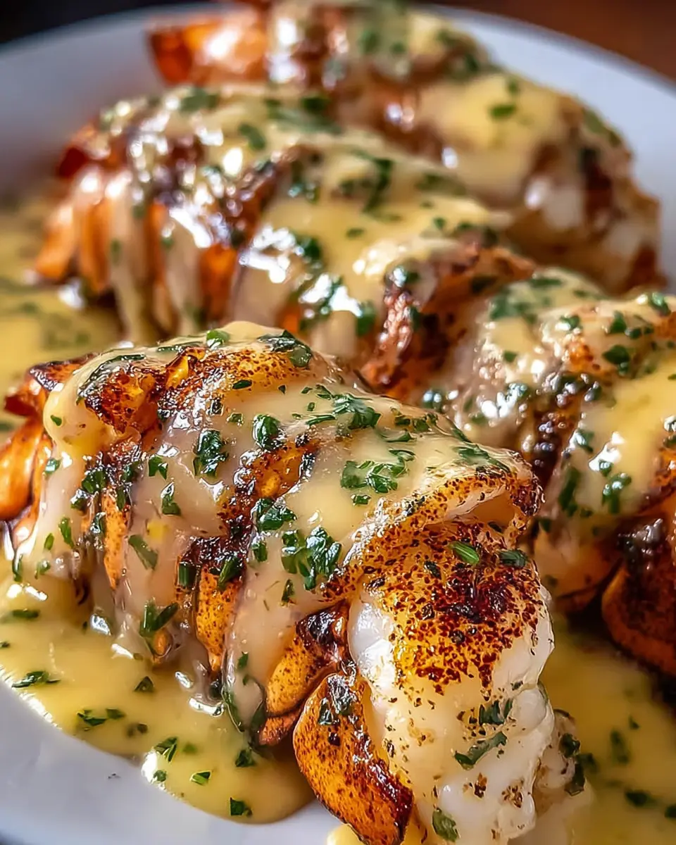 Once everything is beautifully cooked, it’s time to assemble your dish. Place the baked lobster tails on a platter and drench them generously with your creamy garlic butter sauce. A sprinkle of chopped fresh parsley will add a vibrant touch and a hint of freshness, making your creamy garlic butter lobster tails visually stunning. Serve them hot and watch as everyone gathers around for a taste of this culinary masterpiece!