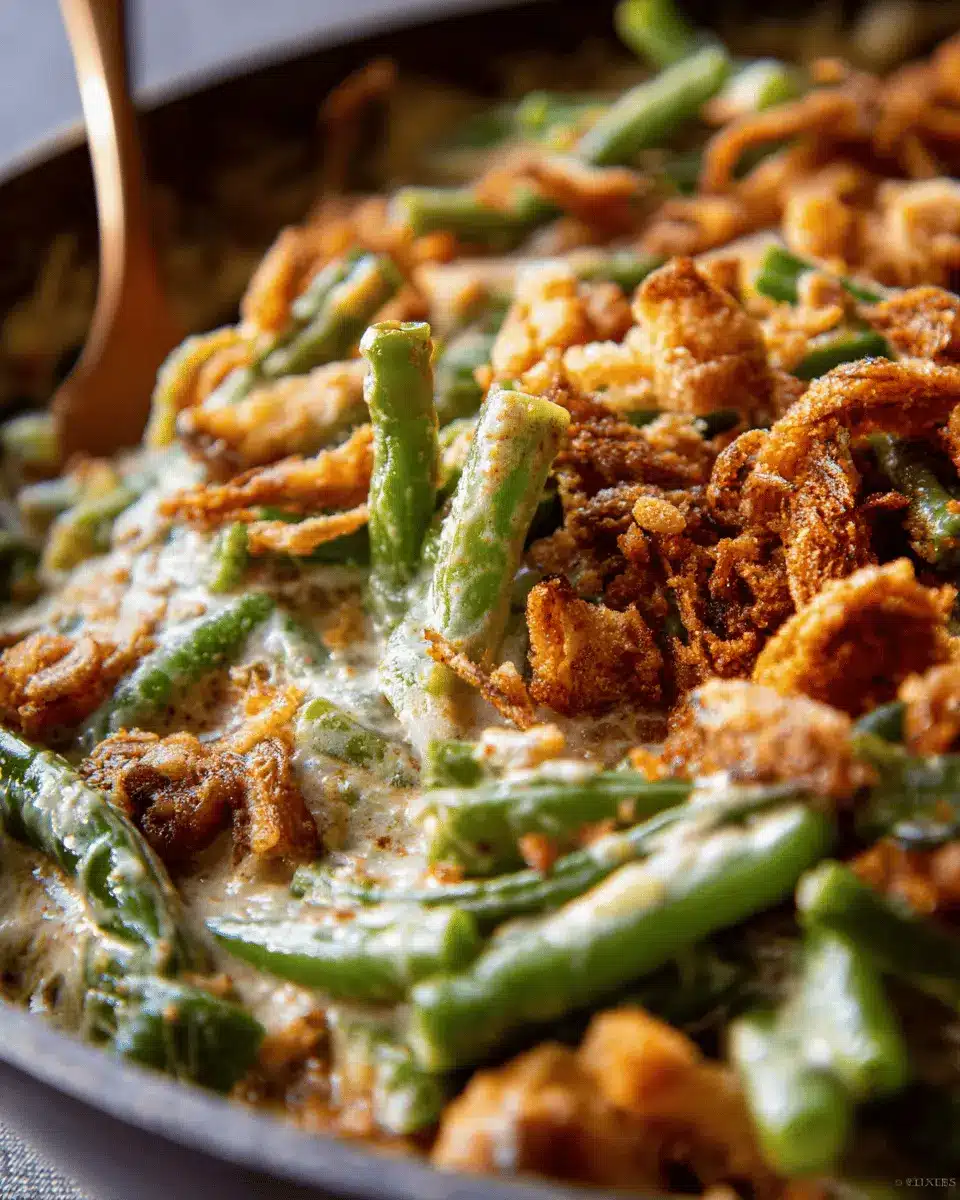Toppings can make or break your casserole, so let’s get creative! Instead of traditional baked onions, you might try crunchy tortilla chips or crushed crackers. For a nutty crunch, you could sprinkle slivered almonds or chopped walnuts on top. Feeling adventurous? A drizzle of balsamic glaze just before serving can elevate flavors in your creamy green bean casserole to a whole new level!
