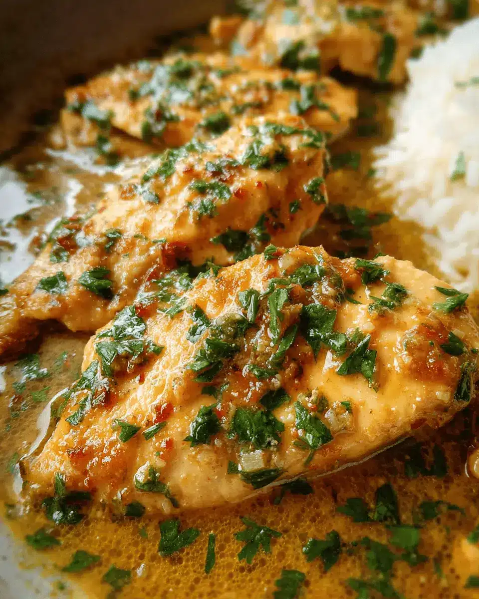 With the chicken prepped, let’s whip up that heavenly garlic butter sauce. In a large pan, heat 1 tablespoon of butter and 1 tablespoon of olive oil over medium-high heat. Toss in your minced garlic and sauté for just 1-2 minutes until it starts to brown. Next, pour in the chicken stock, scraping any lovely bits stuck to the pan using a wooden spoon. Stir in the remaining five tablespoons of butter, whisking until the sauce becomes slightly cloudy. Sprinkle in the fresh parsley and give it a taste; season with more salt or pepper if needed.