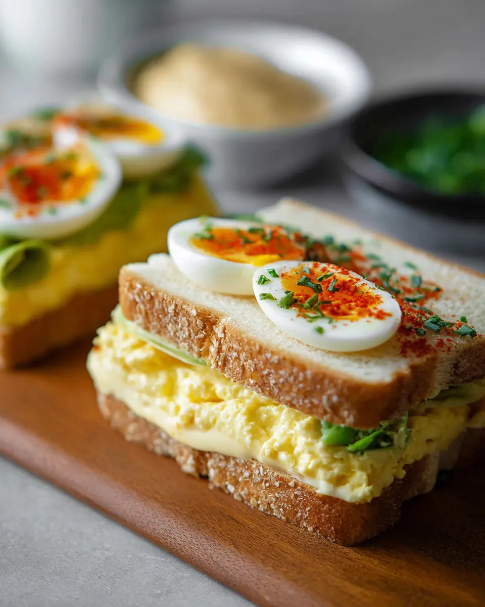 Presentation is key! Use a sharp knife to neatly slice each sandwich in half diagonally, revealing the creamy filling and egg. This not only makes your sandwich look inviting but also makes it easier to handle.