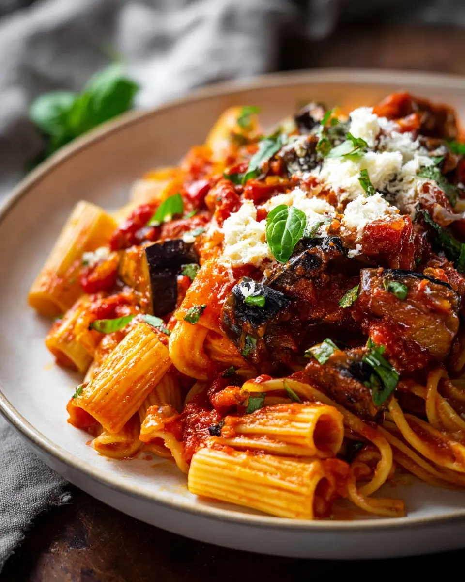Present your Pasta alla Norma with a sprinkle of toasted pine nuts for added texture and flavor. Alternatively, serve it in individual bowls topped with a dollop of ricotta cheese for creaminess. If you're feeling adventurous, toss in some sautéed spinach or kale for extra nutrients, making your meal both satisfying and healthy.