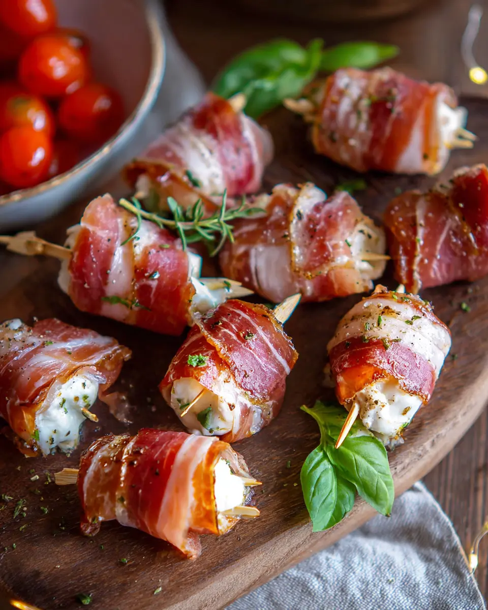 These bites are ideal for any gathering, from casual get-togethers to elegant dinner parties. They make a fantastic addition to appetizer trays, alongside fresh veggies, olives, and crackers. Want to impress your guests? Arrange them on a wooden board garnished with basil and a drizzle of balsamic glaze for a visually stunning presentation. Whether it’s game night or a celebratory occasion, prosciutto wrapped mozzarella bites are sure to be a hit!