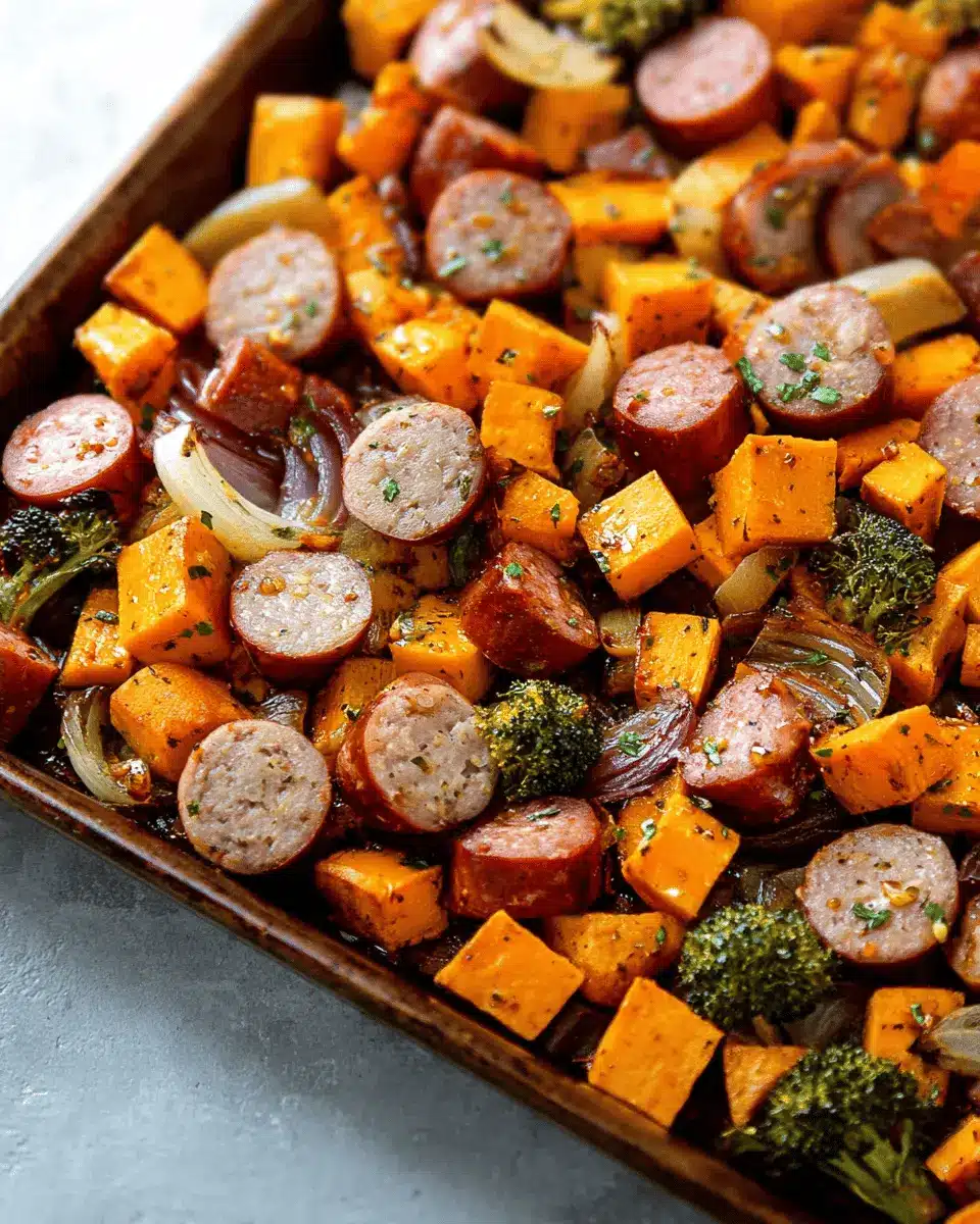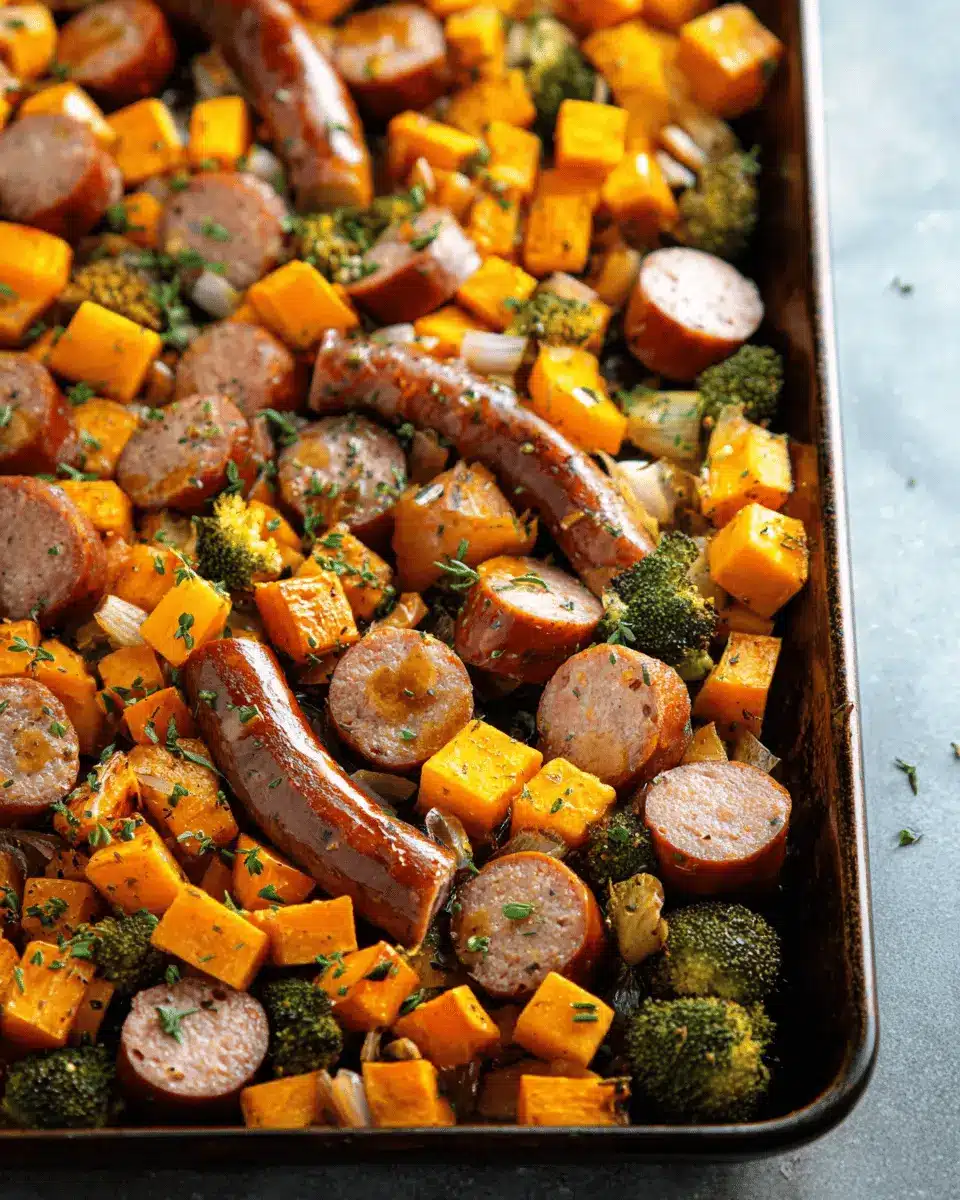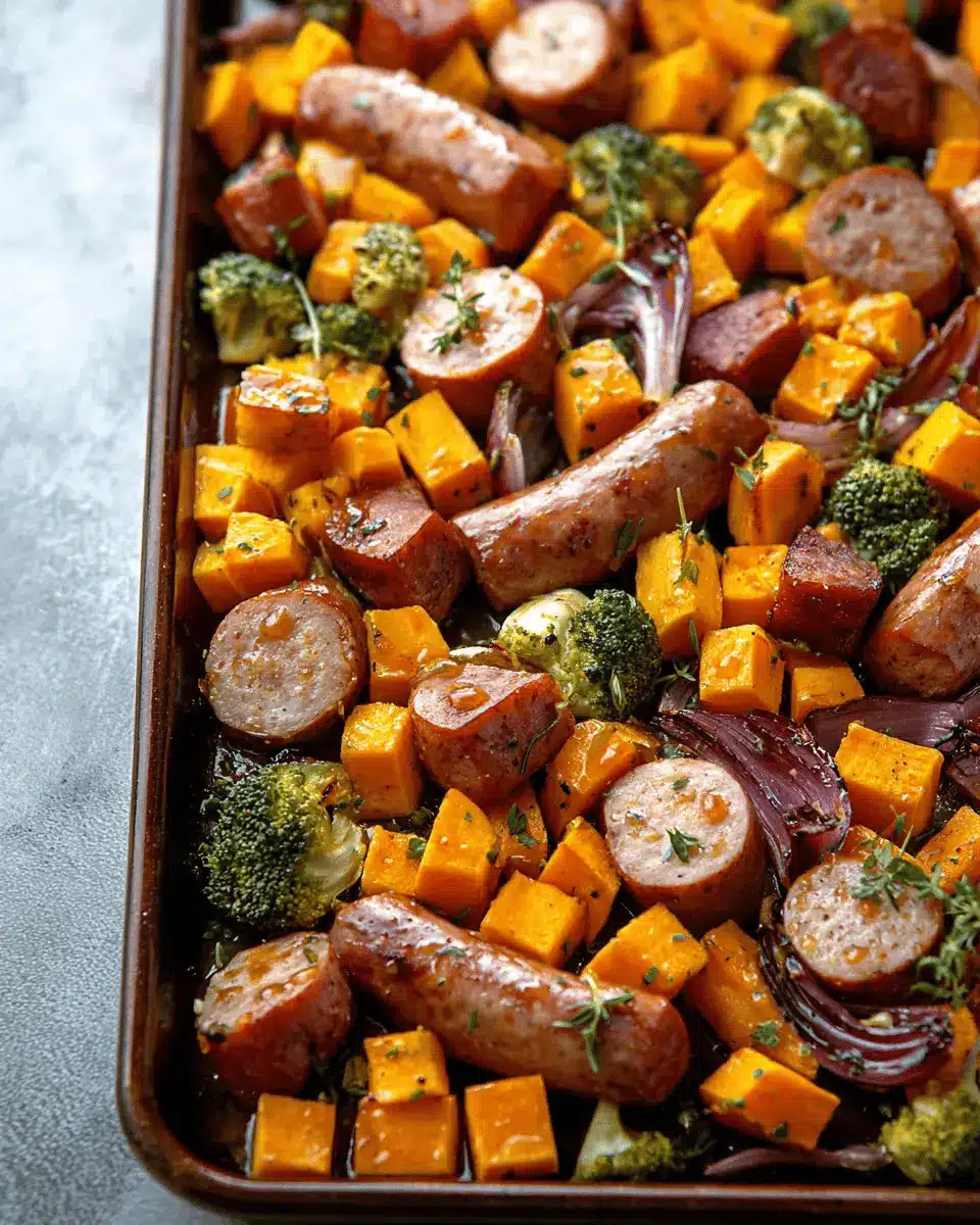 In summary, Sheet Pan Sausage and Sweet Potatoes is an effortless, wholesome meal that combines savory sausage with sweet, tender vegetables. The honey garlic sauce adds a delightful sweetness that elevates the dish. Perfect for busy weeknights, this recipe promises flavor without the fuss—making dinner time a breeze!