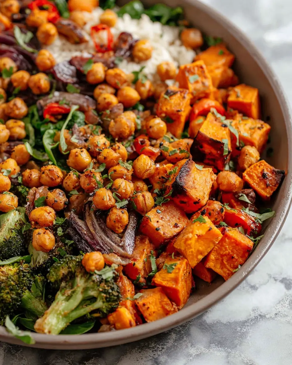 Getting your ingredients prepped is a breeze! Set aside about 10-15 minutes to chop your sweet potatoes, broccoli, and onion. Don’t forget to rinse and dry those chickpeas—they’re key to achieving that perfect crunchy texture.