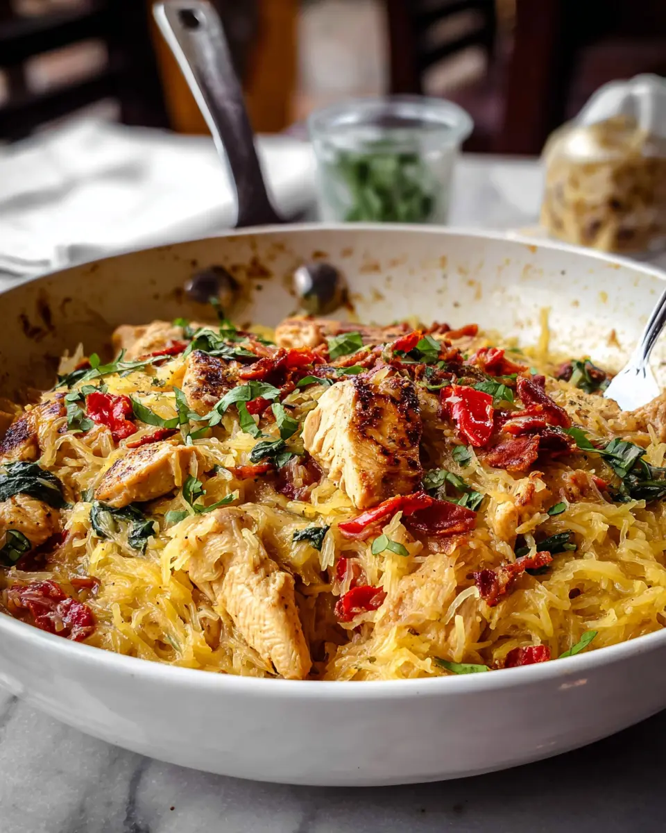 To elevate your Tuscan Chicken and Spaghetti Squash, consider pairing it with a fresh arugula salad or roasted seasonal vegetables. A side of garlic bread can add a delightful crunch and soak up any remaining sauce. For a touch of brightness, drizzle some lemon juice over the dish just before serving; it really enhances the flavors!